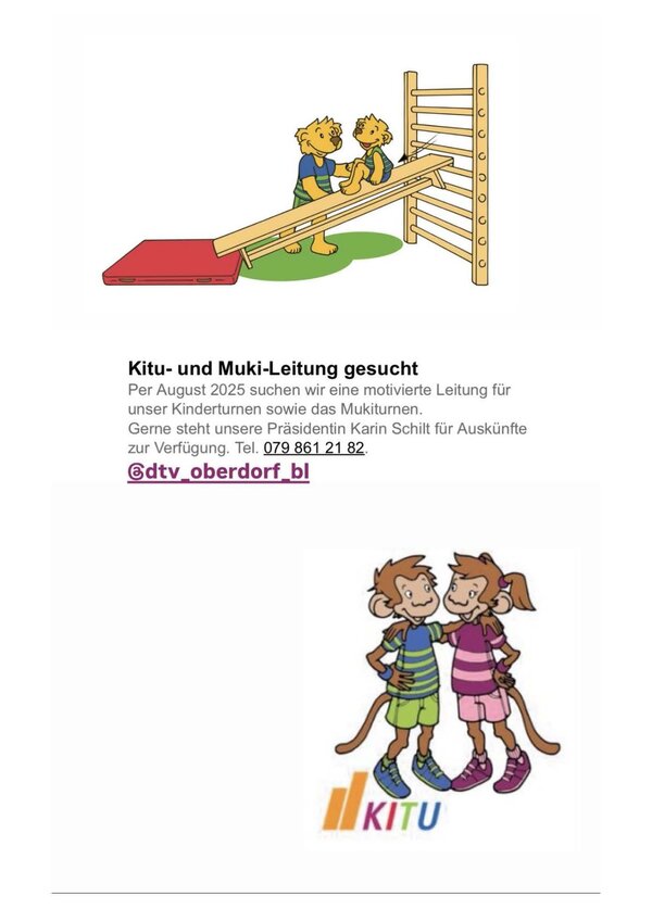 Wir suchen Leute, die Freude am Turnen haben und etwas für die Fitness tun wollen. Jeweils Montag von 20.00 - 21.45 Uhr in der Mehrzweckhalle Oberdorf